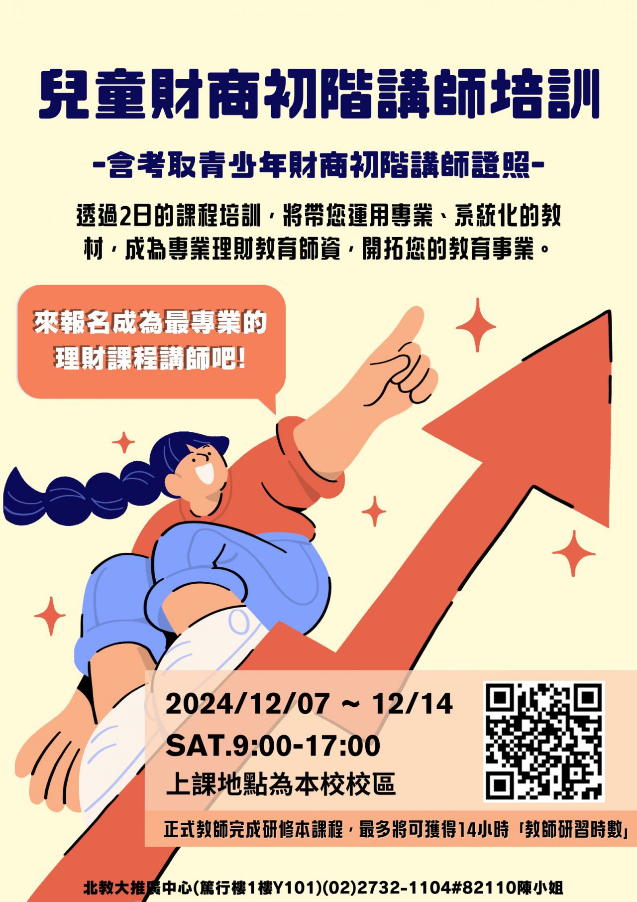 有關國立臺北教育大學推廣教育中心師資培訓暨證照班系列課程「草編幸福-童玩技藝師資培訓(入門班、進階班)、兒童財商初階講師培訓班」招生訊息,請參閱附件。